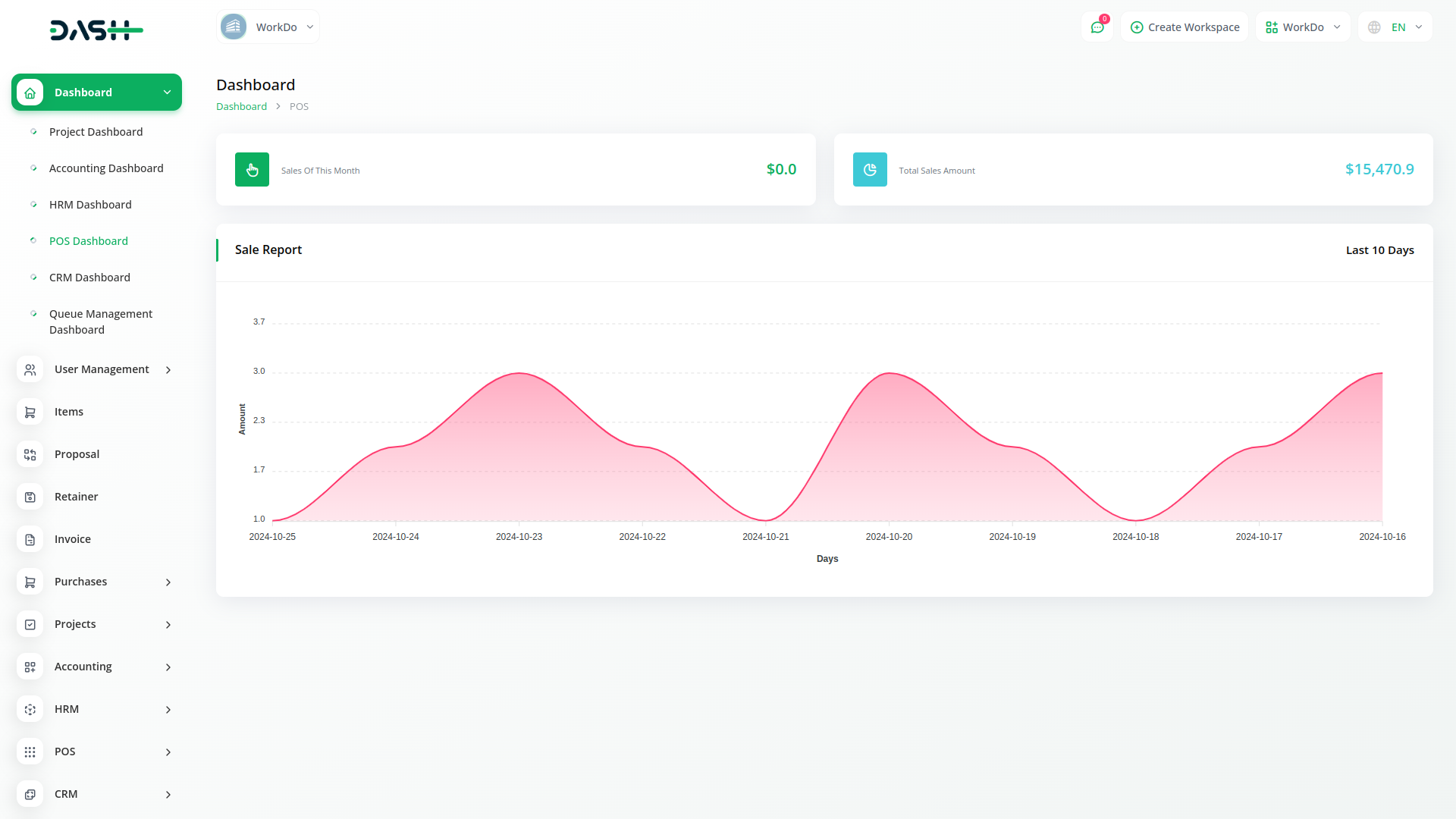 Dengan Modul POS, melacak pendapatan Anda secara real-time belum pernah semudah ini. Di bagian atas dashboard, Anda akan menemukan bagian khusus yang menampilkan total jumlah penjualan. Fitur ini memungkinkan Anda memantau pendapatan Anda dengan cepat, sehingga Anda dapat mengambil keputusan yang tepat mengenai kesehatan keuangan bisnis Anda. Baik Anda menganalisis tren penjualan harian, mingguan, atau bulanan, platform kami menyediakan alat yang Anda butuhkan untuk mengelola keuangan Anda dengan mudah.