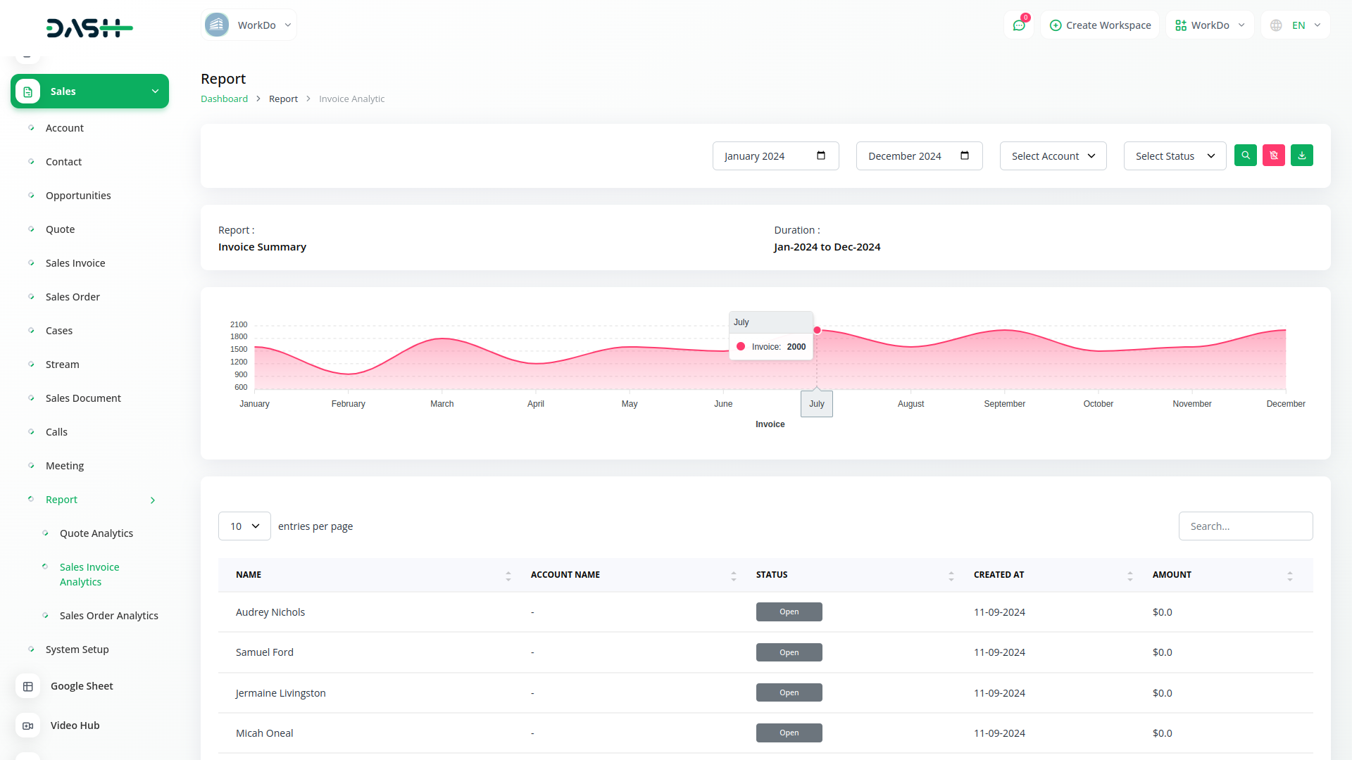 Dapatkan analisis dan laporan yang disesuaikan secara otomatis dikirimkan kepada Anda. Dapatkan analisis mendalam tentang pesanan penjualan, faktur penjualan, dan penawaran. Dengan mudah filter laporan-laporan ini dengan mengatur berbagai parameter. Dapatkan status, jumlah, pengguna yang ditugaskan, tanggal pembuatan, dan informasi penting lainnya dalam satu daftar. Dengan mudah cetak pesanan penjualan dan faktur, serta tambahkan item baru ke pesanan yang sudah ada.